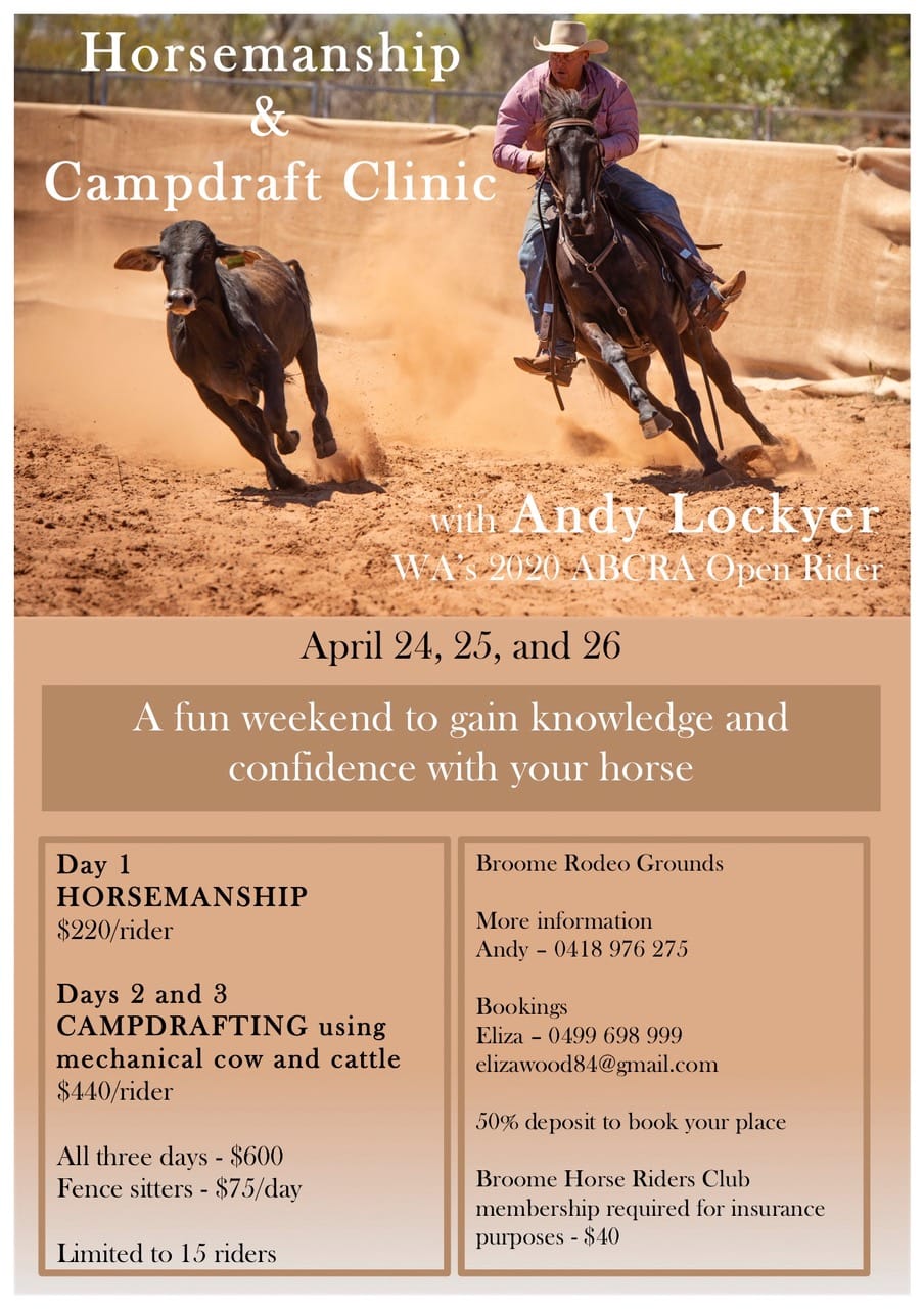April 24, 25 & 26 2021: Horsemanship & Campdraft Clinic with Andy Lockyer