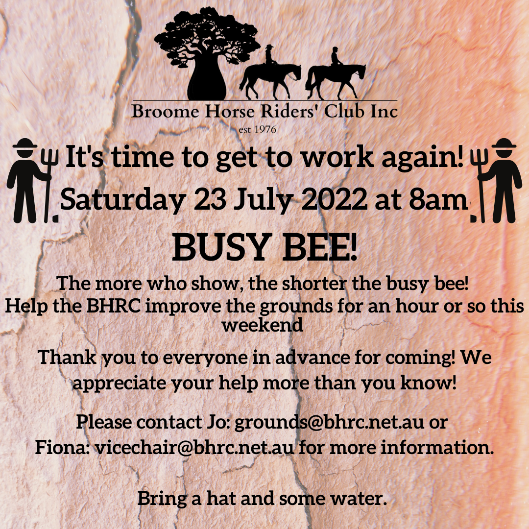 23 July 2022 – Broome Horse Riders’ Club – Busy Bee 2 – 8 am start. Bring a hat and water!